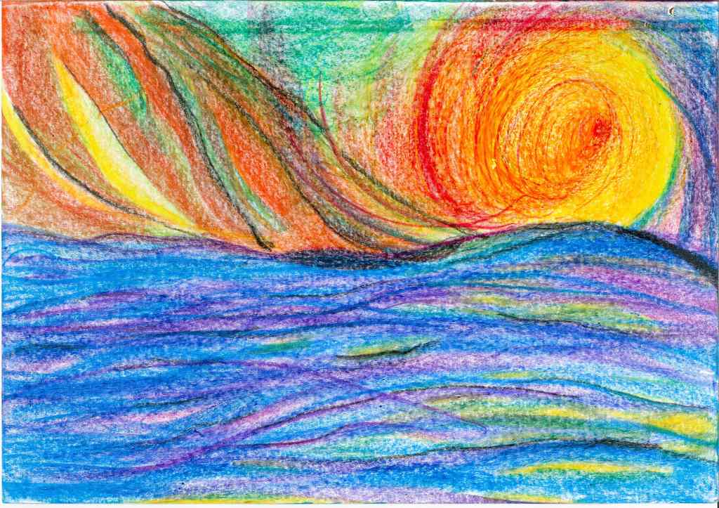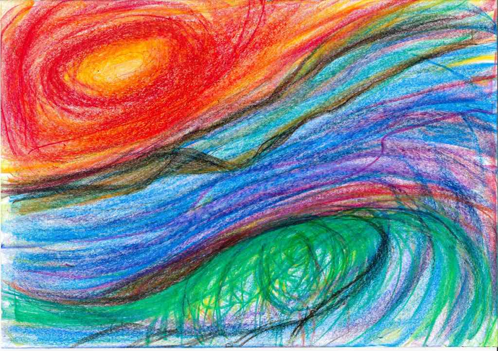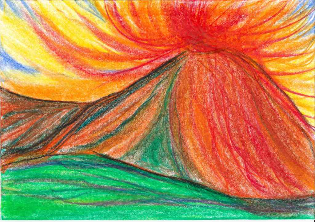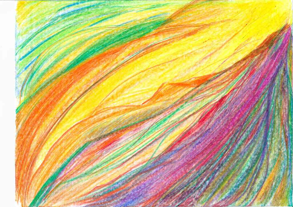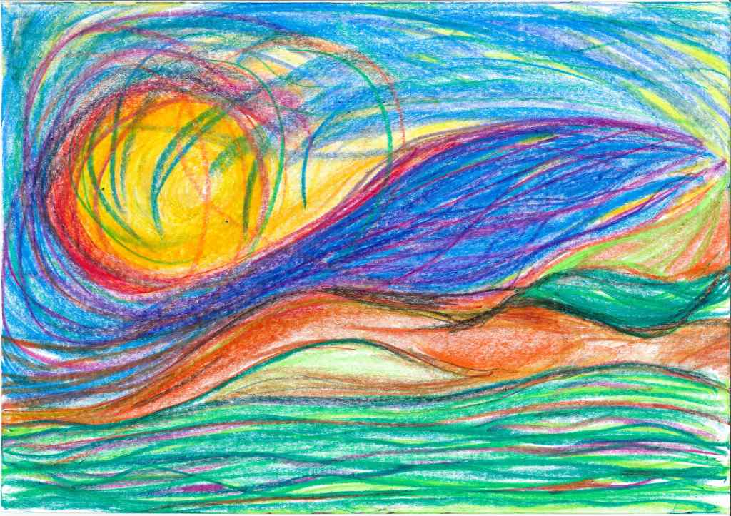 Mostly between 2022 and 2023 I have tried to translate into drawings inner movements and visions created after new moon and full moon mediation rituals. This durational piece, of which the landscape are a testimony, is part of my interest of using healing practices as creative tools. Drawing is a further development of my performance practice, where the body is the master and inspiration. Agnes Varda’s allegedly once said: if we’d open people up, we’d find landscapes”. I thought to find in me the seaside. I have found mountains, a volcano, a lake, a river, finally the sea. The idea of working with landscape has to do with the tradition in several cultures to use landscape both as contemplative theme as well as an escapist strategies of exoticism. I was also interested to work with the potentialities of what performers know as “the flow”, meaning a kind of fluid decision making that arises from the moment (or does it?) and questions the boundaries of inner and outer space, of ego and non ego. The subject is not the topic here, but rather the struggle between trying to follow the impulse and the will of form; a struggle of an ignorant artist, struggle to catch the moment, struggle to stay in it, struggle to believe, the desire of Devine (or anything similar), kitsch but somewhat real.